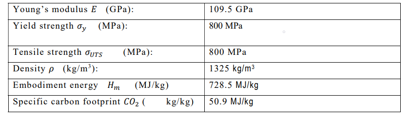 Material Properties of Chosen Material