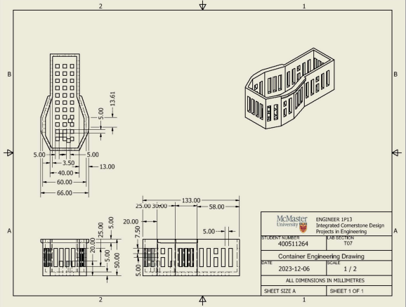 -Used AutoCAD to make a detailed digital version. -Made sure the measurements fit the requirments.